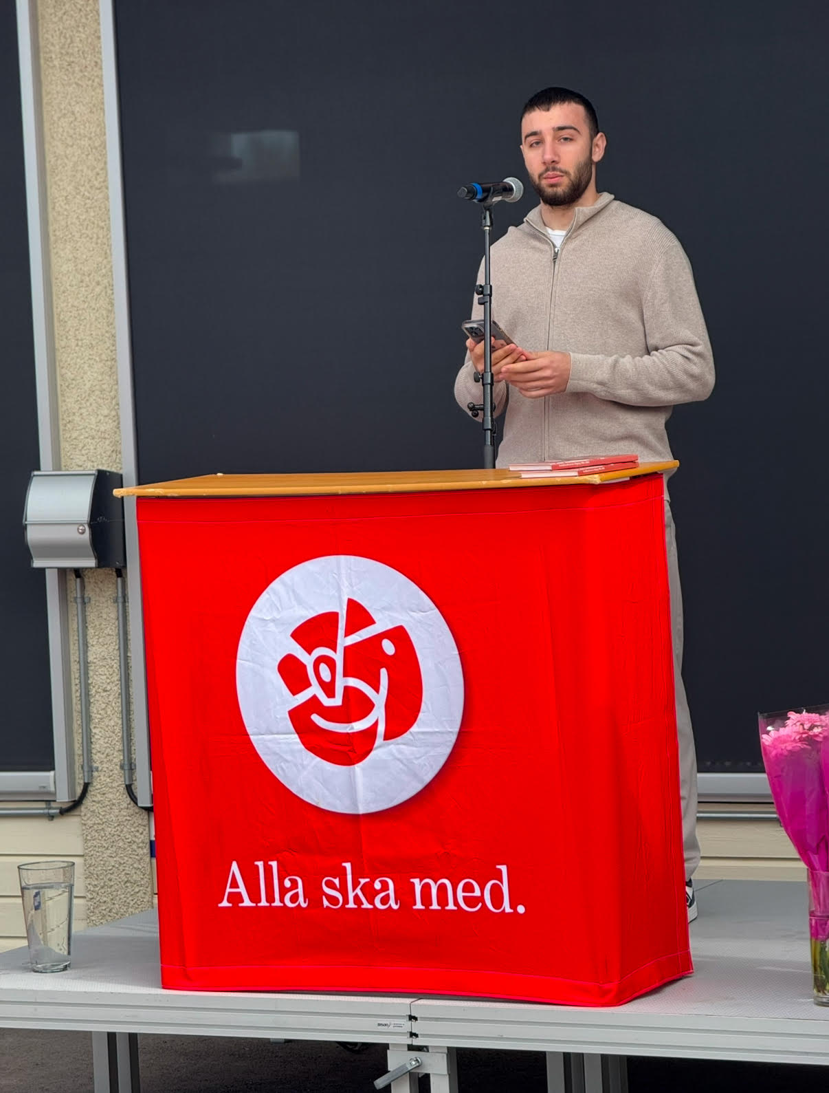 Fyra talare gav uttryck för den politik som socialdemokraterna önskar sig: Kenneth Östberg, ordförande för Socialdemokraterna i Västmanland och oppositionsråd i regionen, Anna Eriksson, facklig / politisk talesperson, Afnan Agha, SSU och Yousif Tabakh, Unga Örnar.