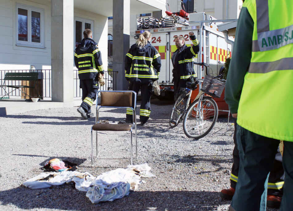 – Det var något askfat och någon fimp under handdukarna. Någonting har ju hänt där under, säger styrkeledaren Anders Svedlund från Västra Mälardalens räddningstjänst.