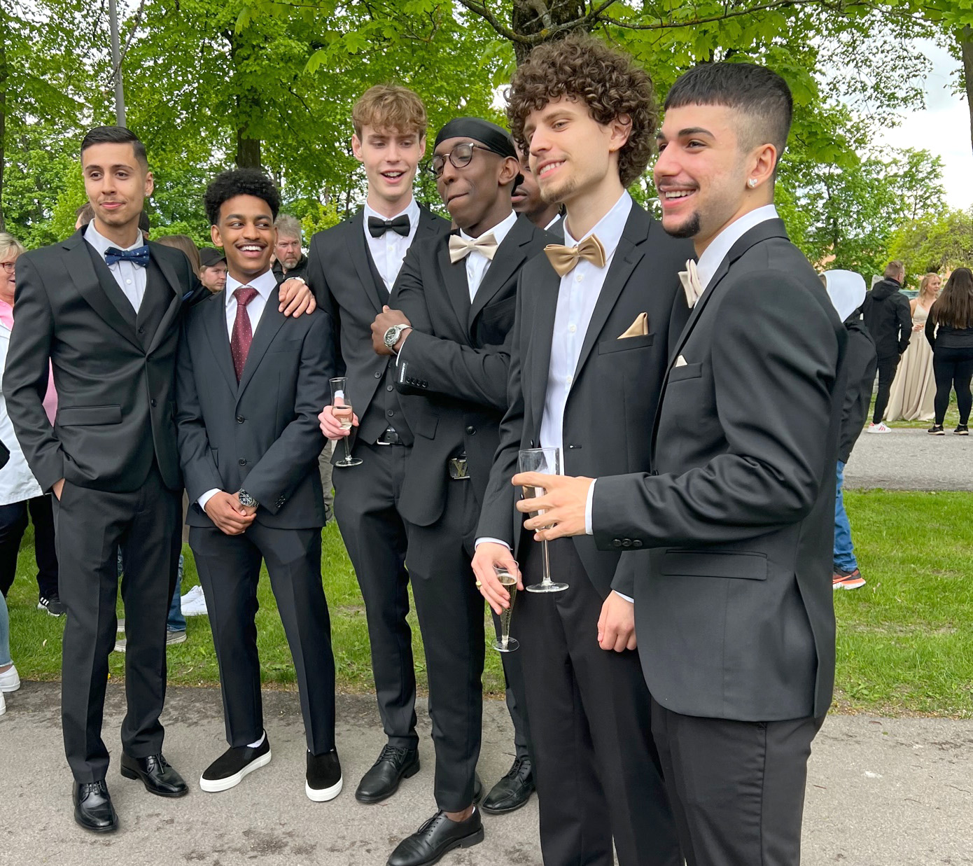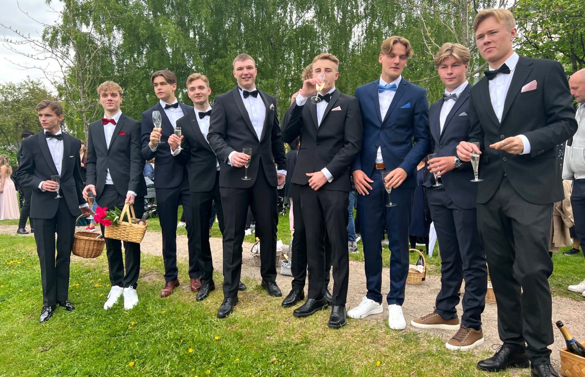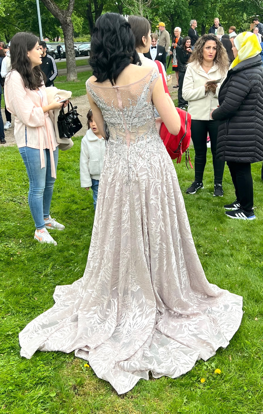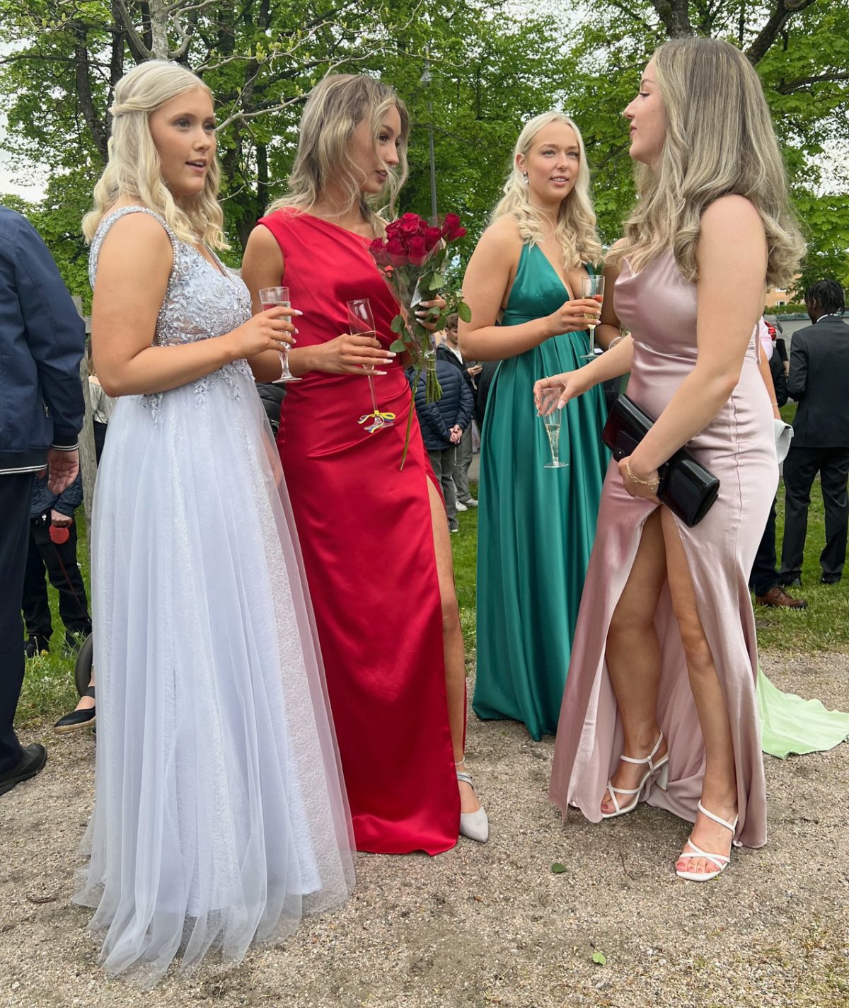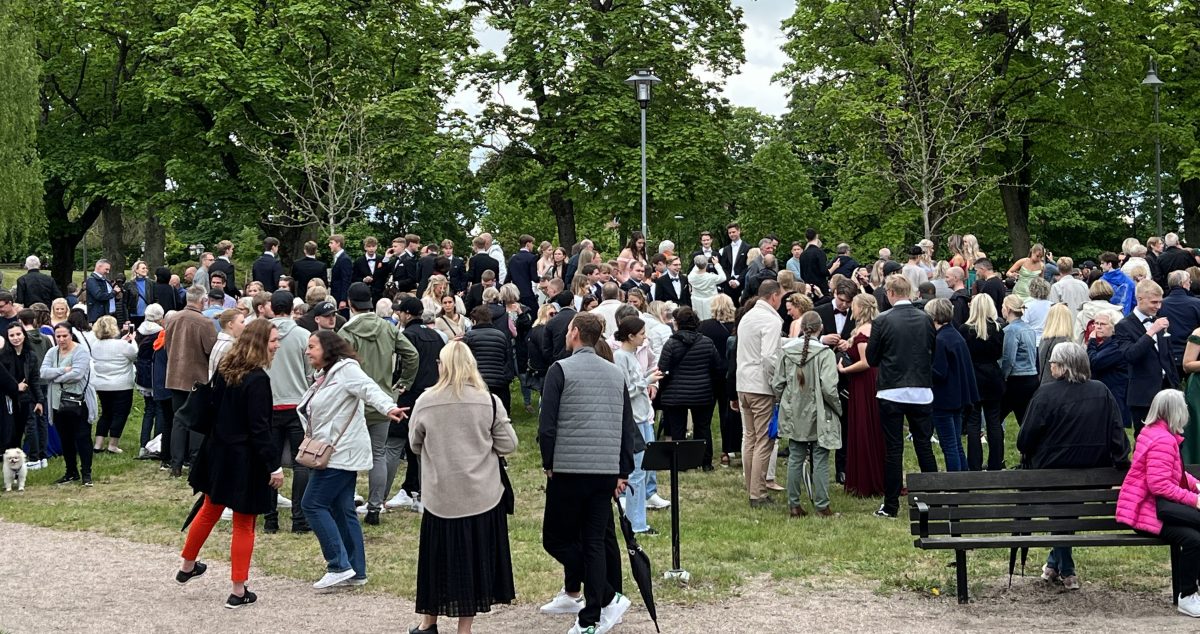 Balklädda studenter minglade igår i Bivurparken inför balen på Sundbyholms slott igår kväll.