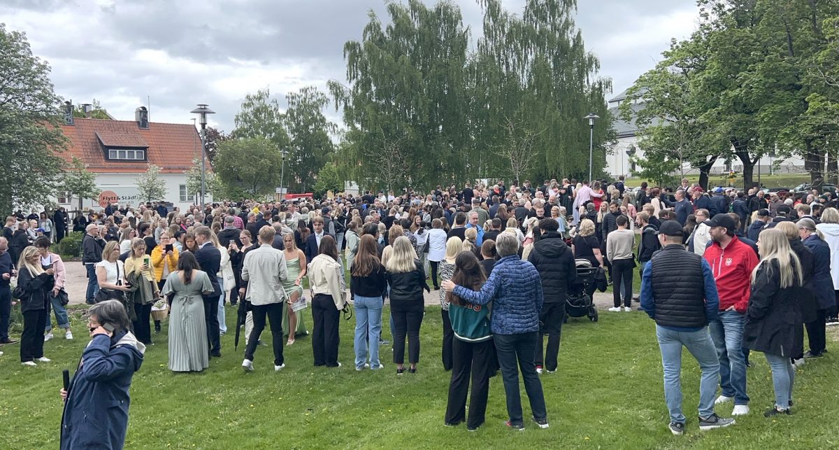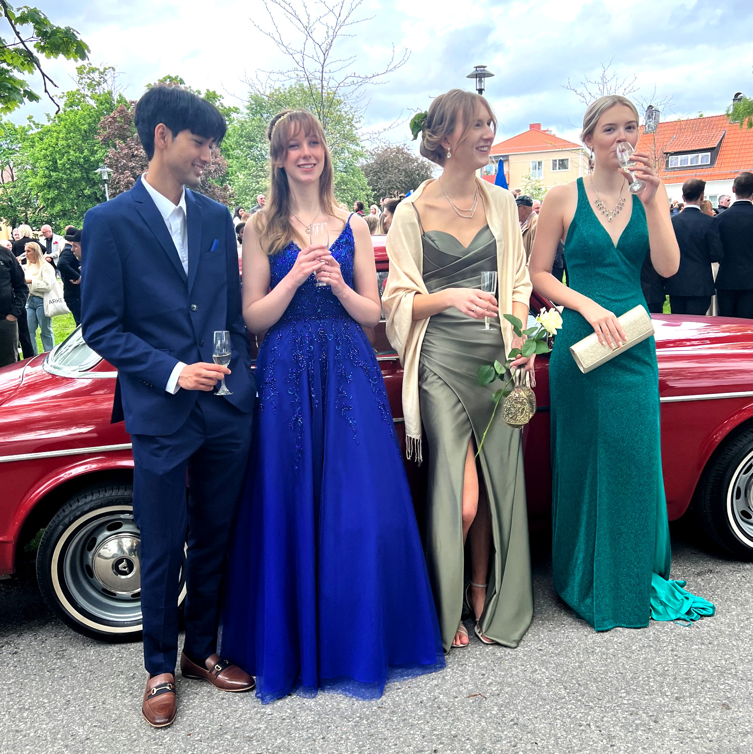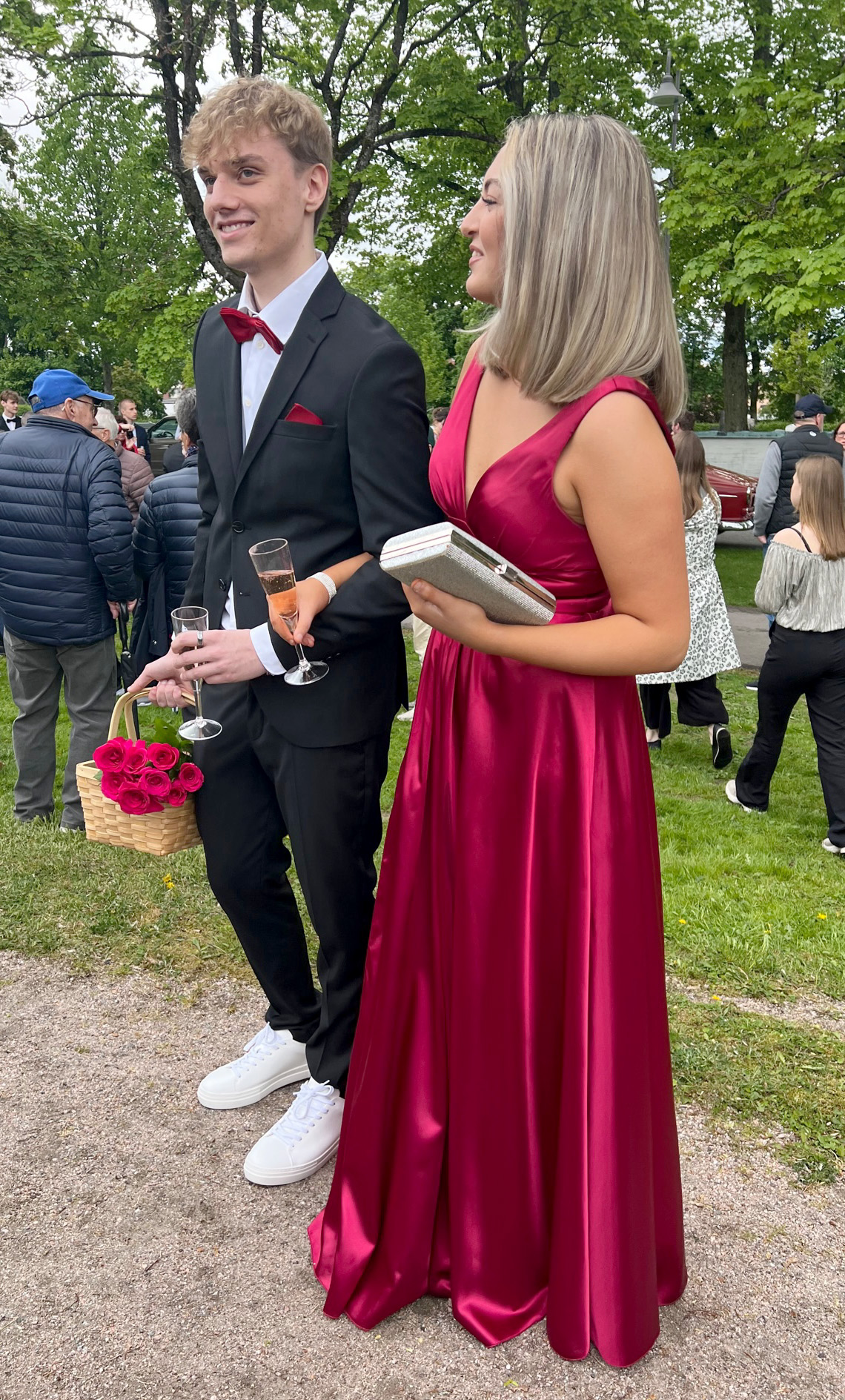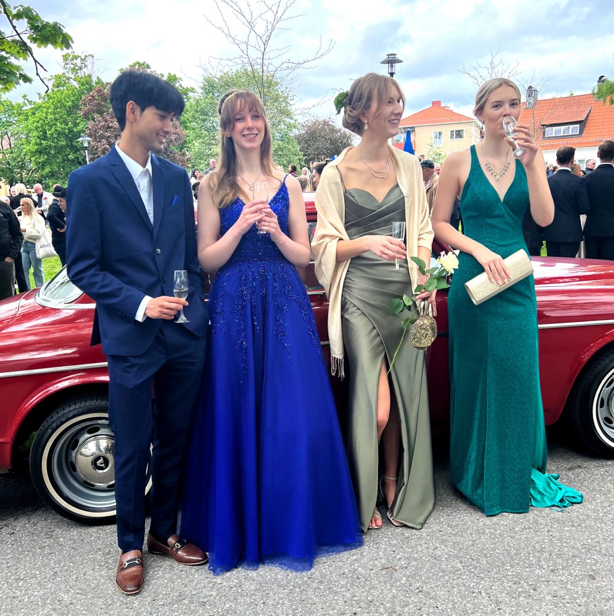 Balklädda studenter minglade igår i Bivurparken inför balen på Sundbyholms slott igår kväll.