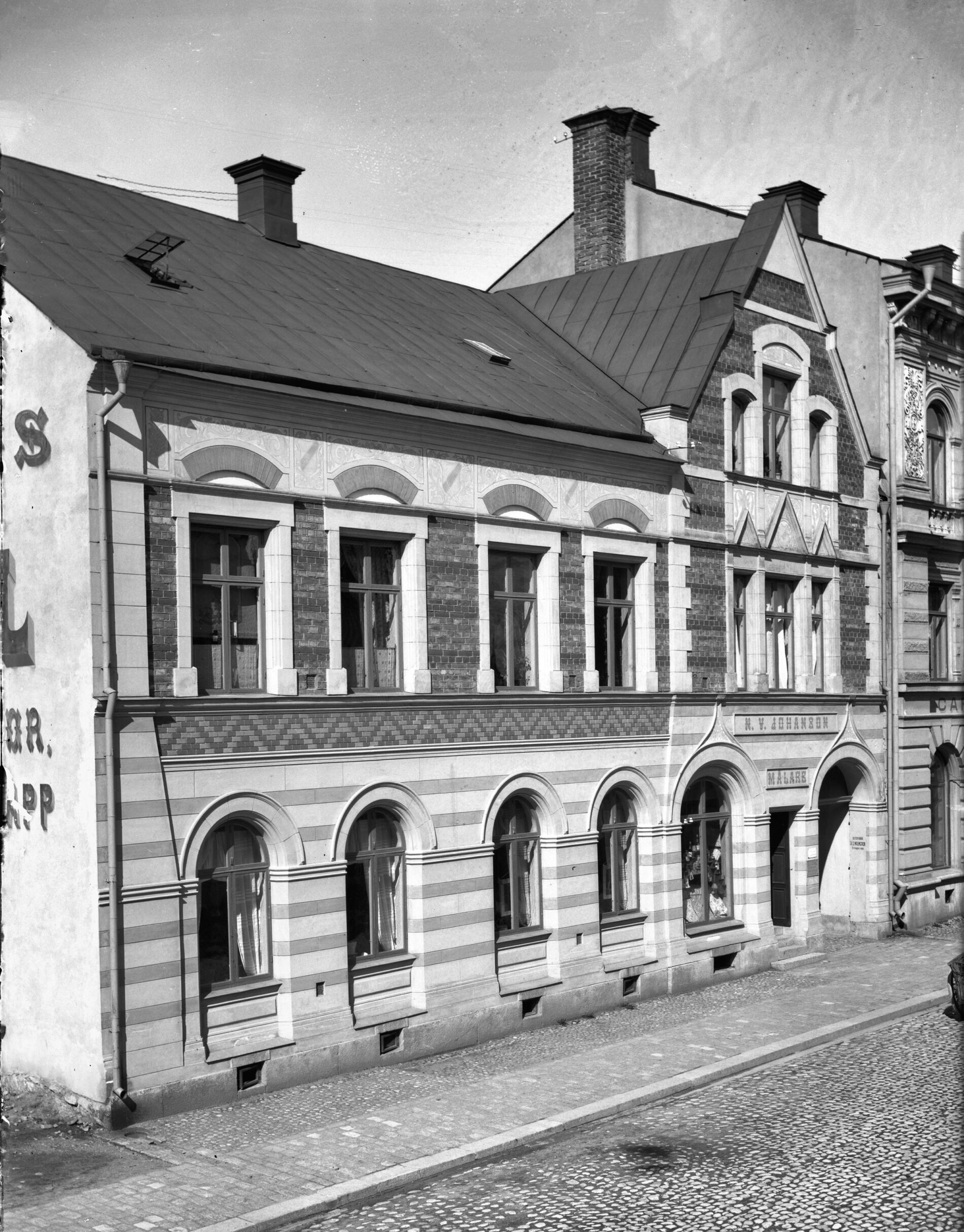 Tre år senare stod hans nya fina färghandel klar på Östra långgatan. Som anstod en färghandlare hade Johansson inte sparat på fasaddekorationerna. Det fick sonen Sven glädje av när han tog över affären.