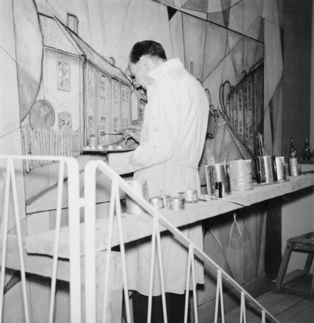 Sven ombads därför att i en del nybyggnationer utföra väggmålningar.