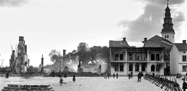Huset var då svårt brandskadat i stadsbranden och alla i staden, inte minst borgmästare Schenström, förväntade sig nu att huset skulle rivas och ge plats för en stor park nedanför kyrkan.