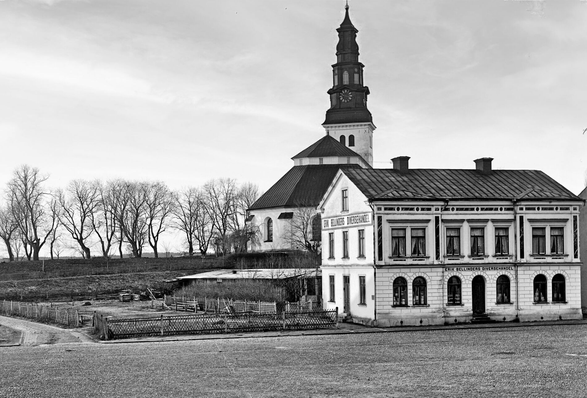 Året efter stadsbranden 1889 hade Erik Bellinder köpt och låtit bygga Köpings största speceributik. Borgmästare Schenström som istället ville ha en vacker park där kallade huset för ”skammens hus”.