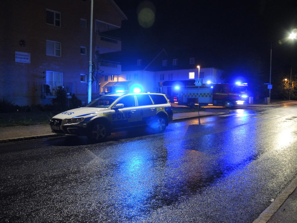 Polis och räddningstjänst var på plats i den aktuella olyckskorsningen vid Östra Långgatan och Nygatan i Köping. Foto: Gunilla Skogman