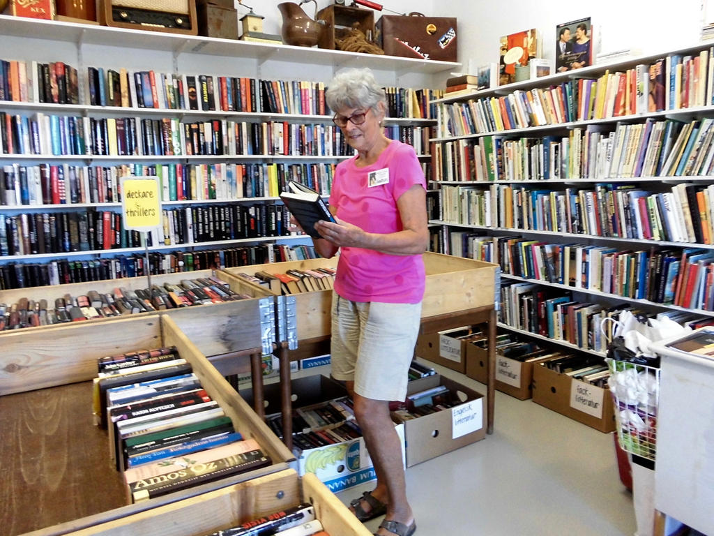 – Björns och min mamma kom då med förslaget att vi skulle ha sommarcafé i skolan, berättar Åsa Söderqvist. – Vi kände att vi ville ha någon mer verksamhet i samband med caféet. Då kläcktes idén om att ha ett bokcafé.