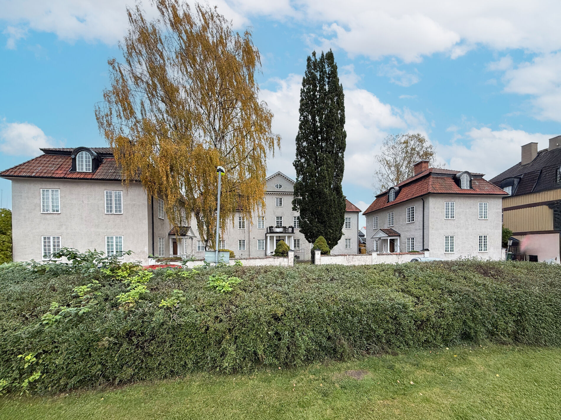 Med sina tolv lägenheter och en total boyta på 1 259 kvadratmeter är det en av de större bostadsfastigheterna i området som nu kommer ut på marknaden. Utgångspriset är satt till 11 miljoner kronor.