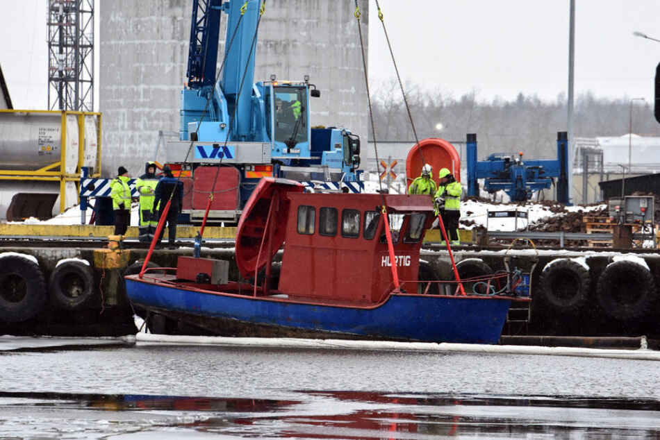 Under onsdagen arbetade man med att bärga båten.