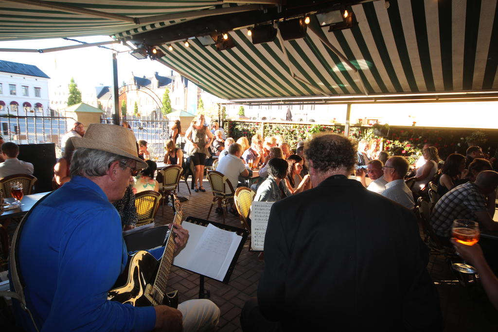 Kvällen bjöd på godstämning i bästa tänkbara sommarväder. På uteserveringen spelade live-musik och det var ett högt sorl från alla glada gäster.