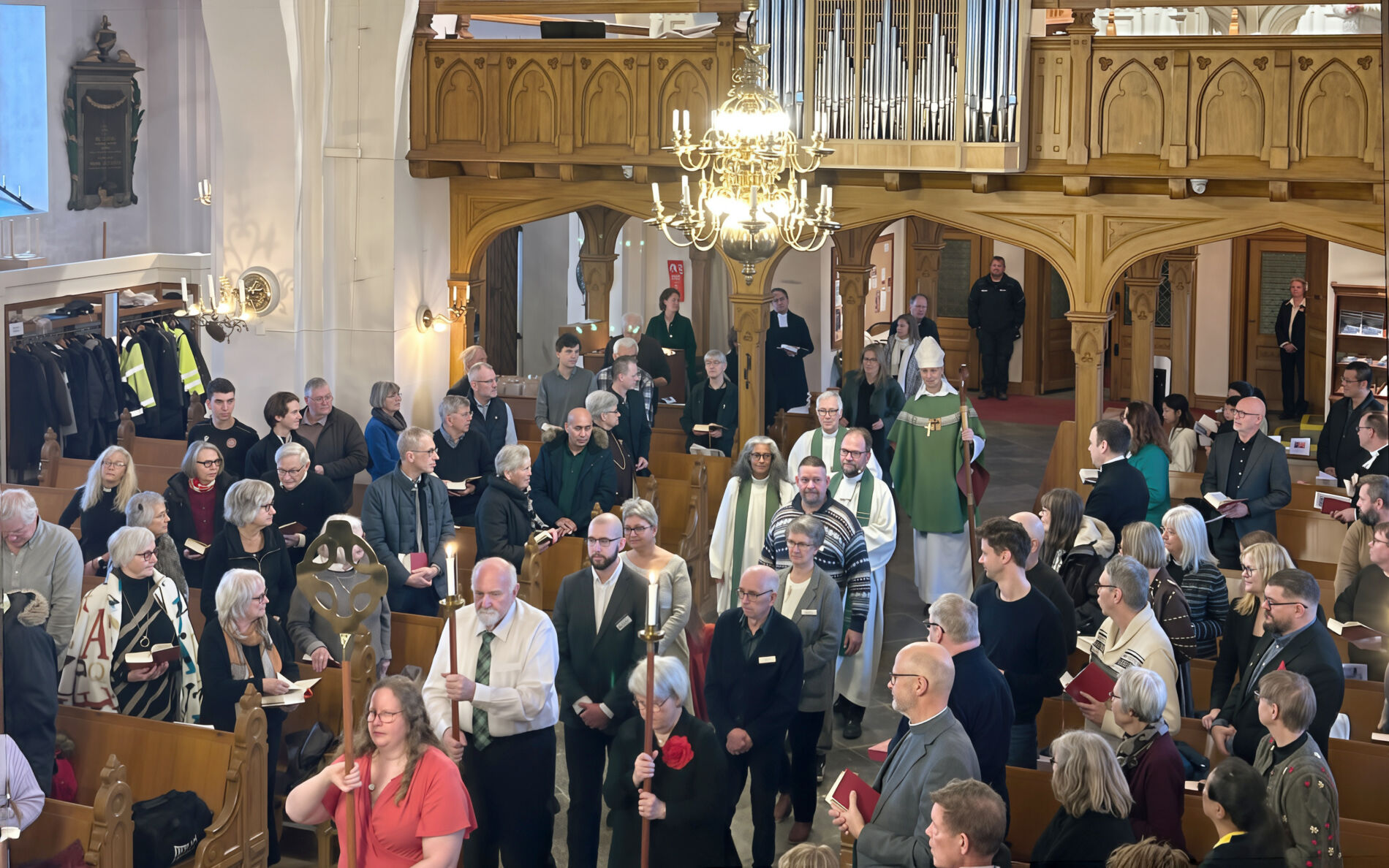 Efter gudstjänsten fortsatte gemenskapen med kyrkkaffe och samtal. Deltagarna fick även möjlighet att ta del av nya psalmförslag, ett inslag som knöt samman tradition och förnyelse.