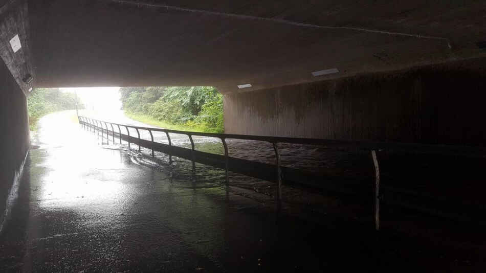 Tunneln under järnvägen nära Netto var drabbat av översvämning.