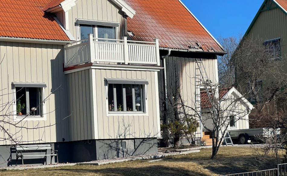 Brandskadorna syns tydligt på husfasaden. Foto: David Eriksson