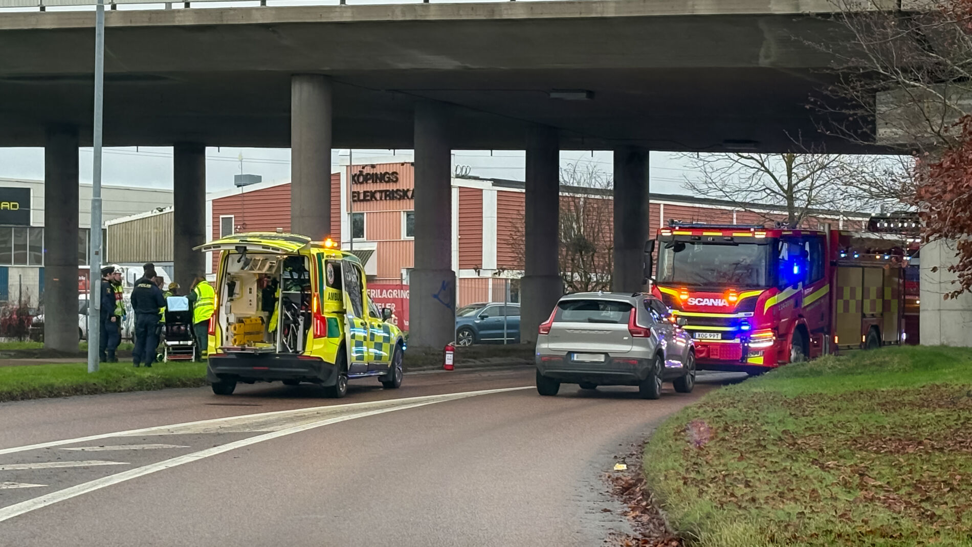 Vid 10-tiden på torsdagsförmiddagen inkom ett larm till SOS gällande en singelolycka vid Ullvileden, under bron till väg 250, i Köping. Det rörde sig om en singelolycka med en person inblandad där personbilen hade kört in i bropelare.