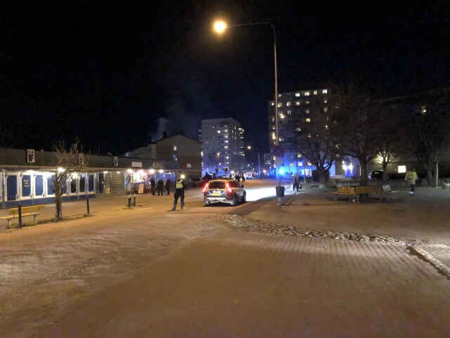 Klockan 18 på kvällen bekräftade polisen att det var en fullt utvecklad brand i källaren. Furuvägen spärrades av mellan Tunadalsgatan och Ringvägen under släckningsarbetet.