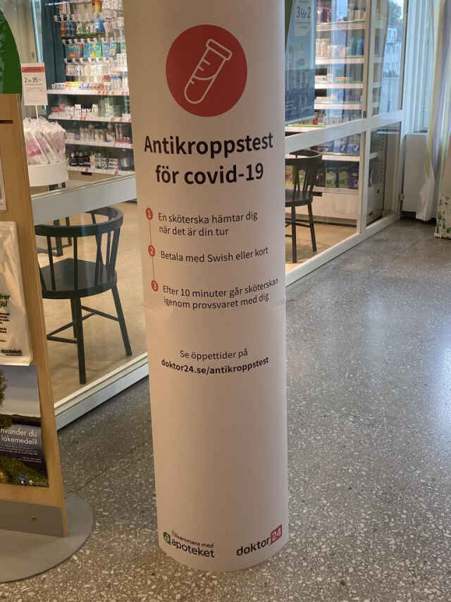 Sedan tre veckor tillbaka erbjuder Apoteket Tärnan i Köping antikroppstestning.