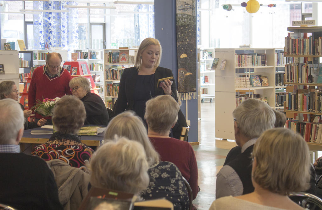 Anne Alamaa, finskspråkig samordnare/informatör vid Köpings kommun, fanns på plats vid biblioteket under firandet.