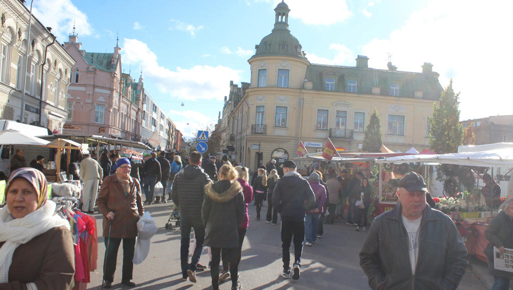 Torgmarknaden välbesökt i höstsolen