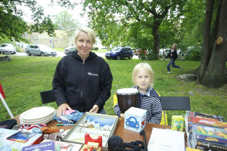 Maria och Milo passade själva på att fynda en trumma innan själva loppisen drog igång.