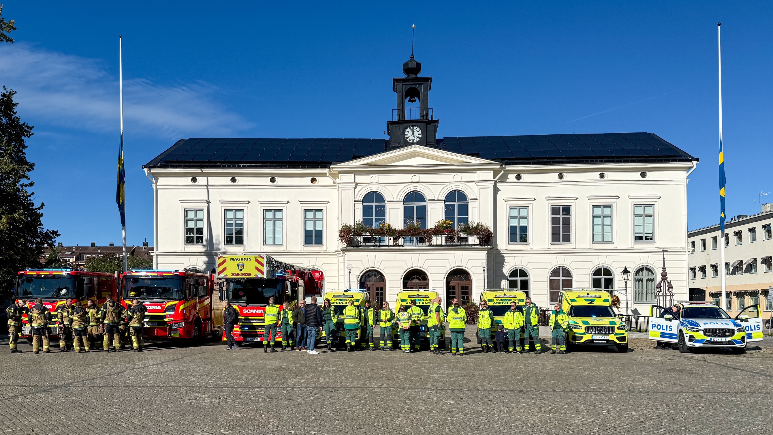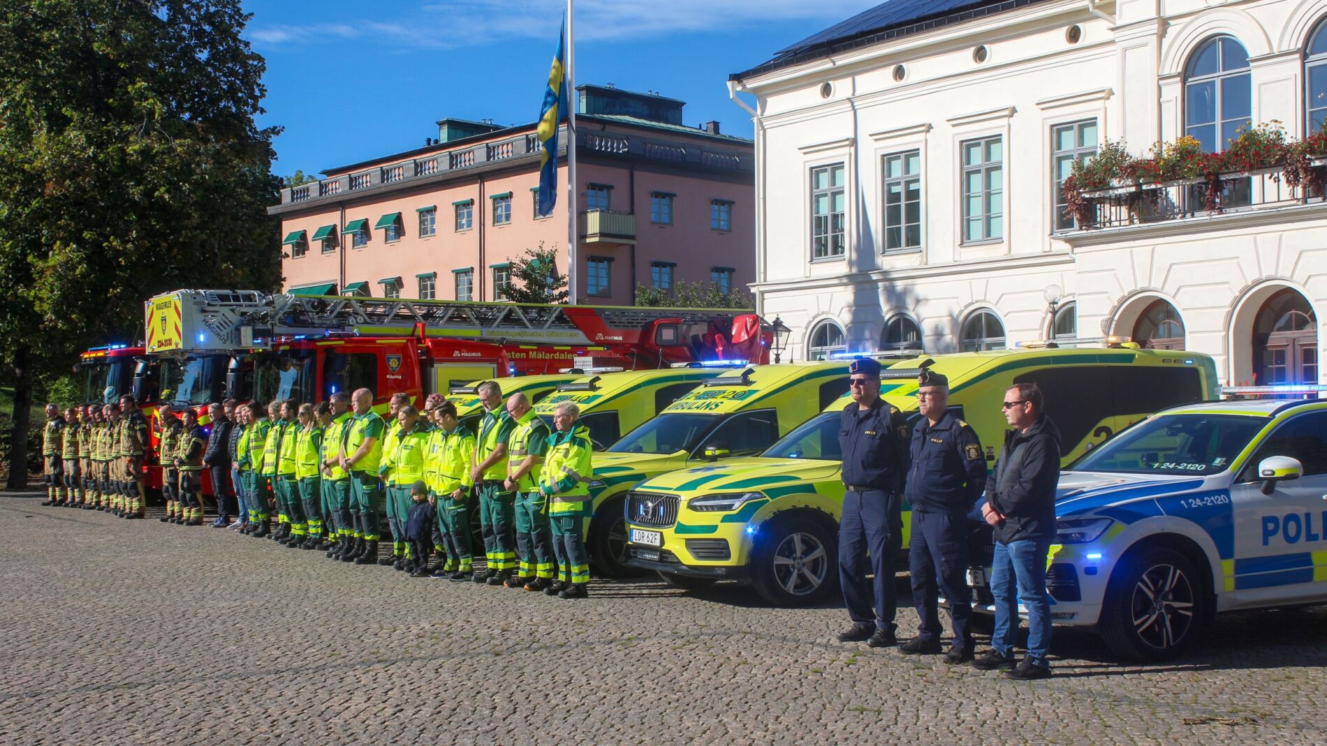Ambulans, polis och räddningstjänst samlades på Stora torget i Köping.
