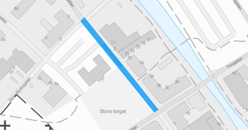 ”Barnhemsgatan, mellan Torggatan och utfarten från parkeringen vid Rådhuset, kommer att vara avstängd för trafik från klockan 06.00 till 20.00”, meddelar Köpings kommun.