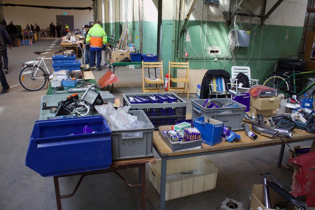 Många passade på att fynda bil-, mc- och mopeddelar. Försäljning skedde även av mer traditionella loppisföremål.