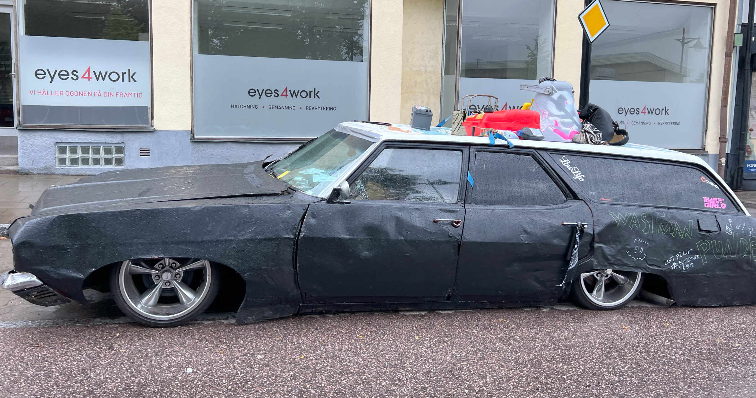 I skrivande stund kanske bilen är bortforslad, så lugnet kan återgå.