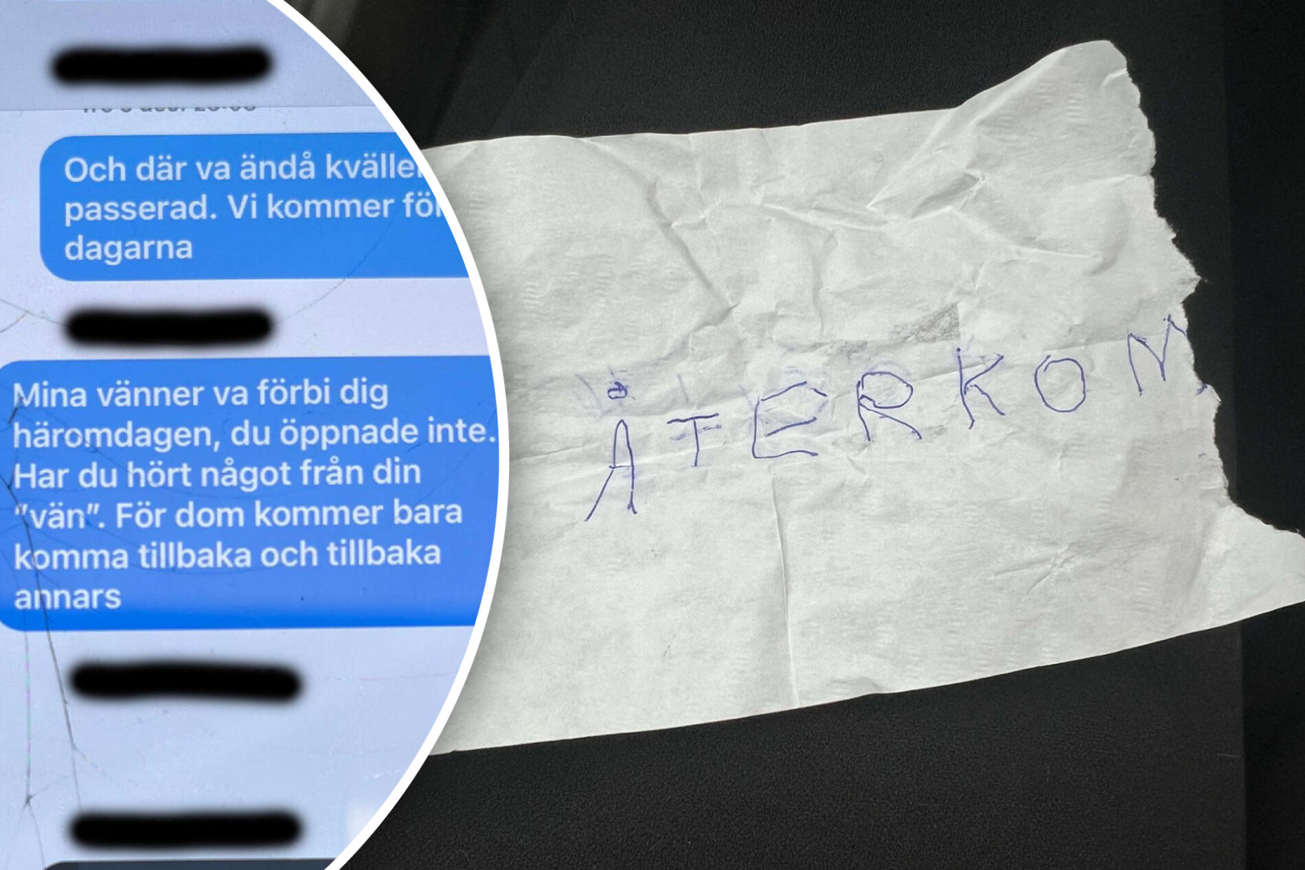 Vid ett tillfälle mitt i natten dök en svartklädd man upp utanför huset där kvinnan bodde tillsammans med sina barn. Mannen ringde på och bankade hårt på dörren och rörde sig mellan husets entréer. Familjen släckte ner bostaden och höll sig gömda inomhus medan barnen grät och kvinnan skakade av rädsla. När polisen kom till platsen hade personen lämnat området. Dagen därpå hittades en lapp på kvinnans bil där det stod ”återkommer”.