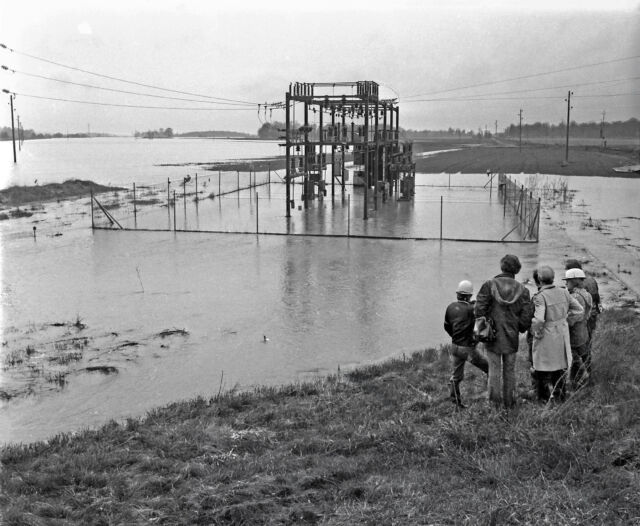 Den stigande vattennivån norr om ån skapade ytterligare ett problem. Transformatorstationen vid broarna i Kungsör var hotad. Vattennivån i ån var nu lägre än nivån på det översvämmade området.