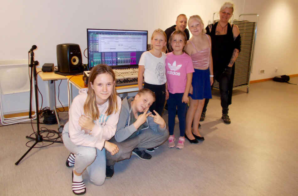 Under måndagseftermiddagen skrev tolv deltagande barn och ungdomar text och musik till en låt.
