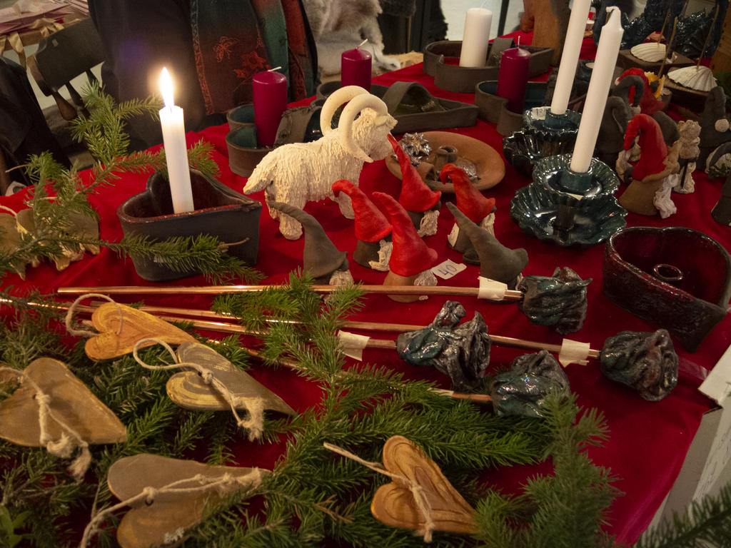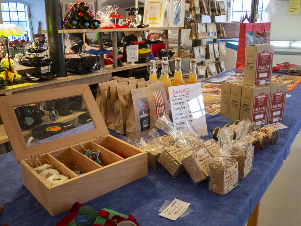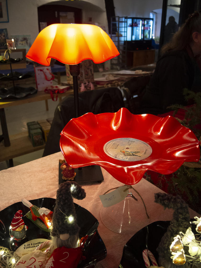 Här fanns granrisbockar, ost, korv, sylt, tomtar och julprydnader, hemstickat, mistlar och något så annorlunda som saker gjorde av gamla och nya vinylskivor.