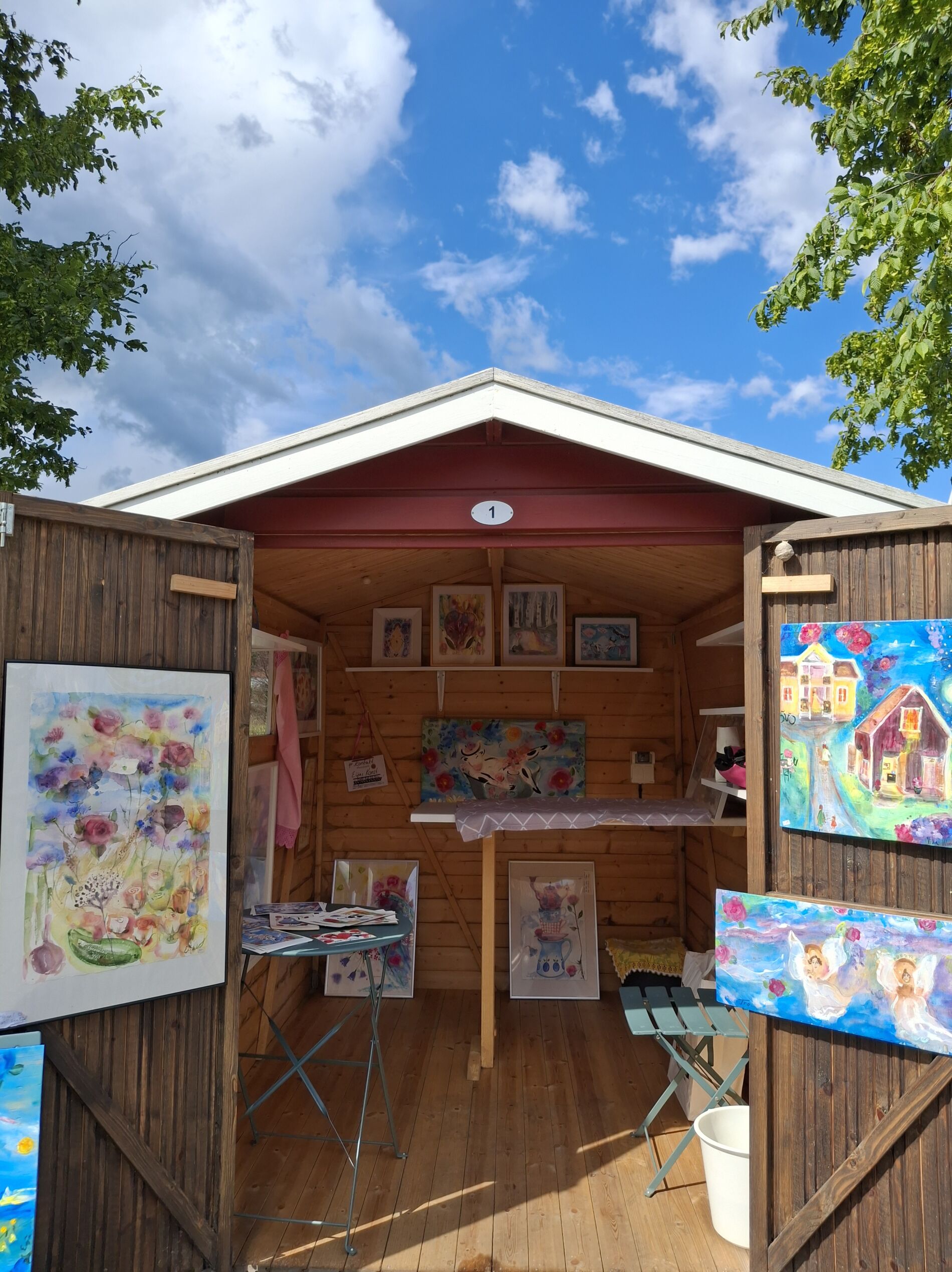 Kungsörs hamn får nytt liv! Den 8 juli öppnade konstnären Eija Saho en av strandbodarna i området. Med både originalverk och tryck till försäljning bidrar Eija till att skapa en levande och kreativ miljö vid vattnet.