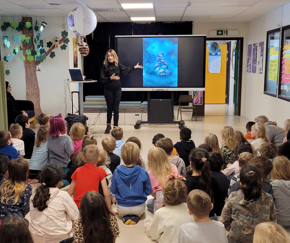 – Alla våra elever känner till hennes böcker och har läst en eller flera, så de har varit alldeles nippriga idag. Bara det att hon faktiskt är på plats efter att eleverna vant sig med att mycket är digitalt under de två senaste åren. Vi har nog aldrig sett eleverna sitta så stilla och lyssnat så noga i en timme.
